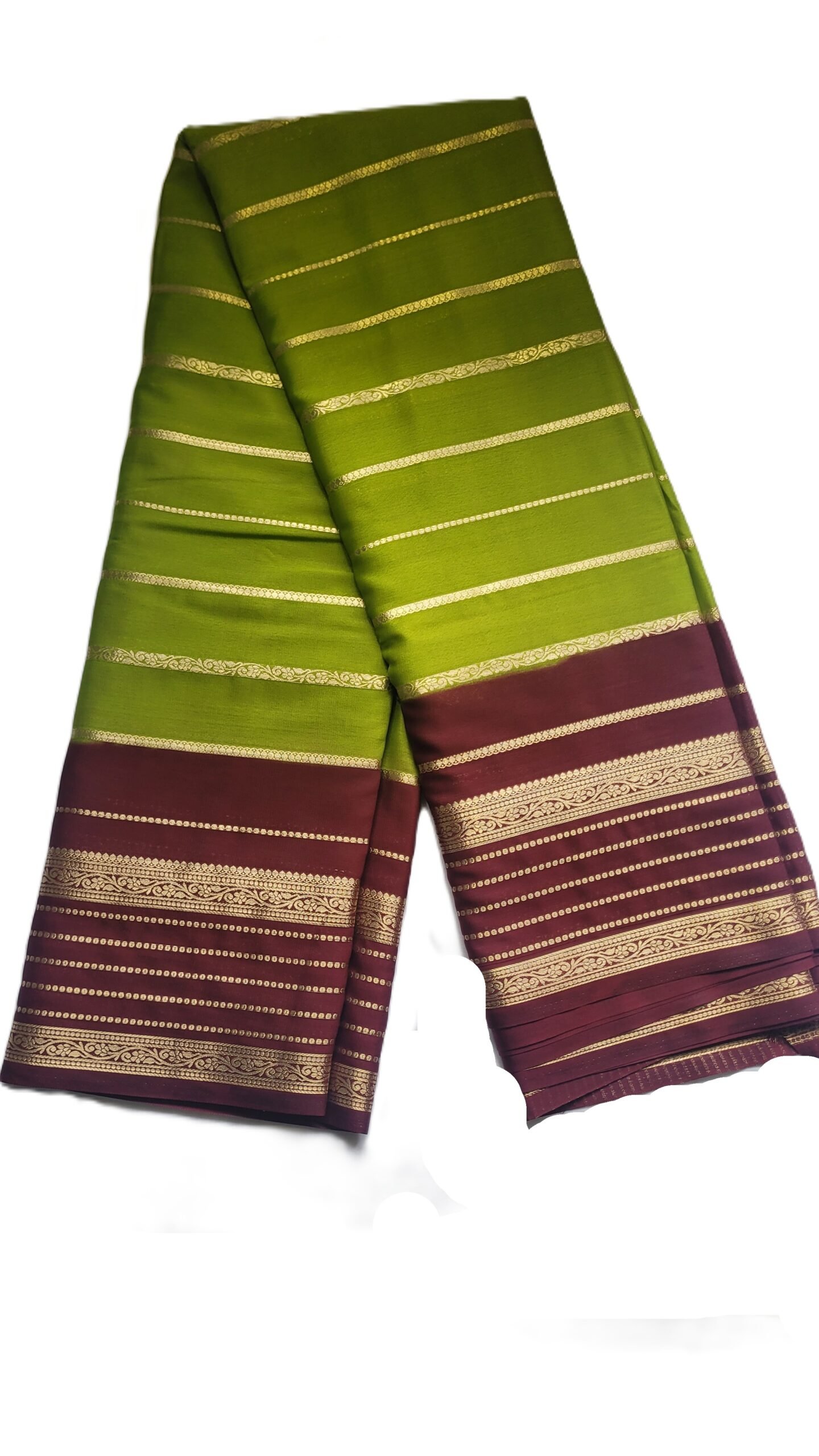 Add a regal charm to your ethnic wardrobe with this Savitri Crape Maroon & Green Saree. Crafted from premium crape fabric, the saree features a striking combination of deep maroon and bright green, beautifully accentuated with golden zari woven borders and delicate stripe patterns. The smooth texture ensures a graceful drape, while the elegant design makes it ideal for weddings, celebrations, and festive gatherings. Paired with a matching blouse piece, this saree blends timeless tradition with modern sophistication.