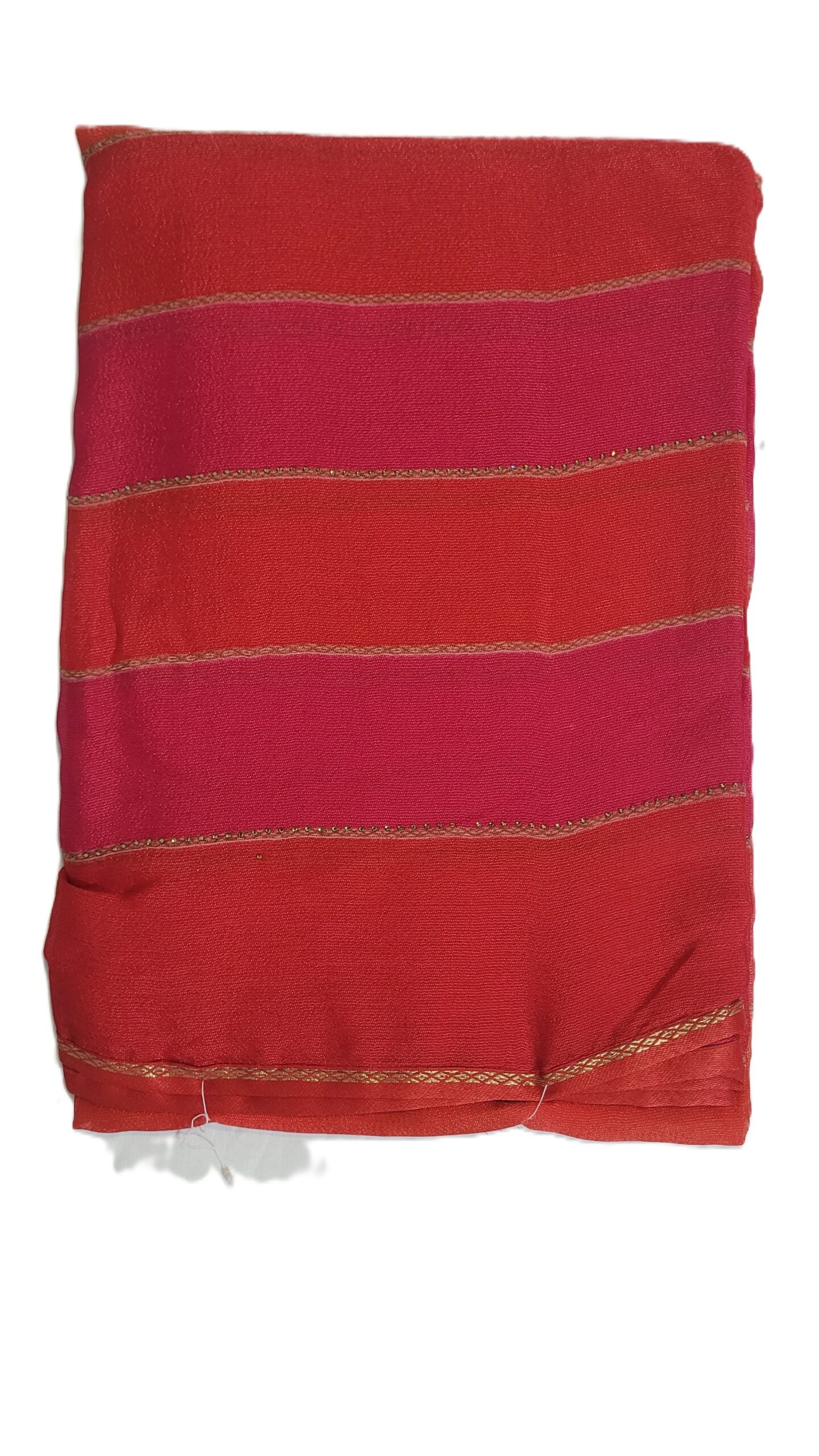 This Red and Rani Pink Lightweight Saree features a contemporary striped design that beautifully blends two rich shades, highlighted with fine golden threadwork. The soft, flowing fabric makes it perfect for casual wear, festive gatherings, or light traditional occasions. Its minimal yet vibrant look offers effortless style with a hint of traditional charm.