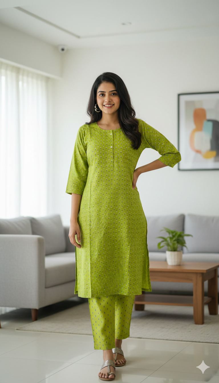 Refresh your everyday wardrobe with this Lime Green Printed Rayon Kurta Set, crafted from premium-quality rayon fabric known for its smooth texture and breathability. The kurta features a subtle and elegant all-over print that adds sophistication while keeping the design light and classy.