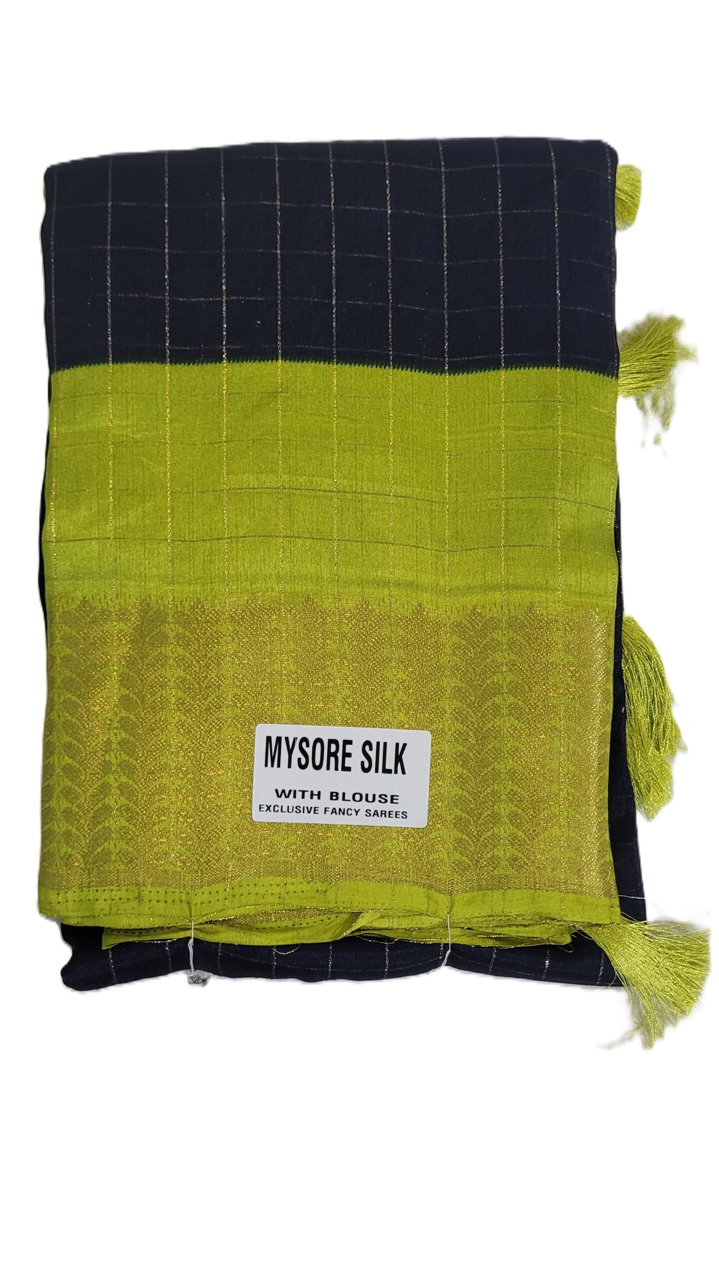 Experience timeless beauty with this Mysore Silk Navy Blue & Parrot Green Saree, crafted to bring out elegance and sophistication. The deep navy blue body is beautifully paired with a vibrant parrot green pallu and border, highlighted by intricate golden zari weaving. Its soft silk texture ensures comfort while maintaining a luxurious drape. Ideal for festive occasions, cultural events, and family gatherings, this saree comes with a matching blouse piece to complete your stunning ethnic look.