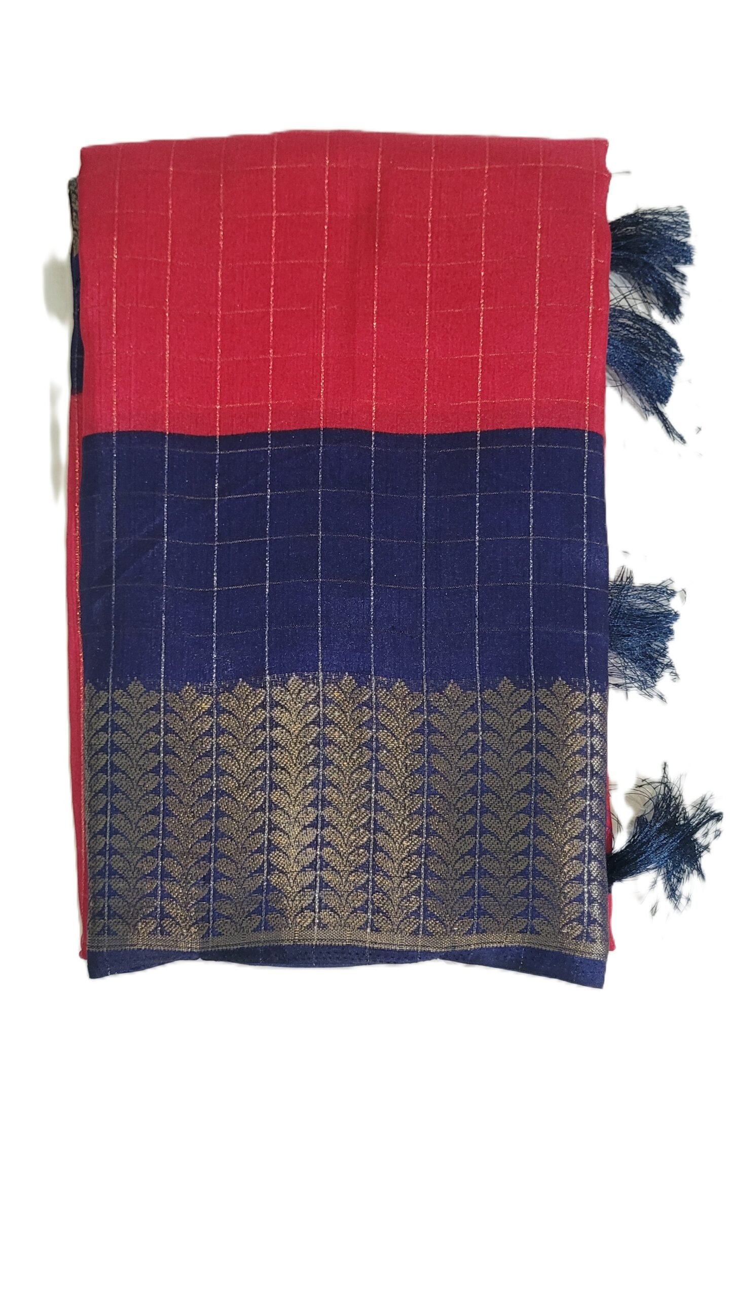 This Mysore Silk Pink & Navy Blue Saree showcases timeless beauty and luxurious craftsmanship. The vibrant red body is beautifully balanced by the deep navy blue pallu, adorned with intricate golden zari weaving, it offers a rich texture and elegant drape that enhances your festive or ethnic look. Ideal for weddings, celebrations, and cultural events, this saree comes with a matching blouse piece — a perfect addition to your traditional wardrobe.